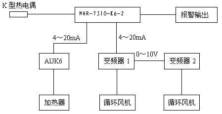 根據系統(tǒng)要求,我們選用了NHR-7300作為主溫度控制儀,系統(tǒng)結構框圖如下圖所示: