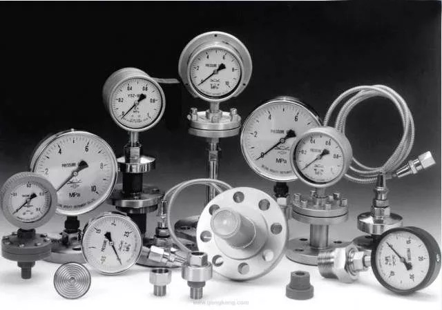 (2)稀硝酸、醋酸、氨類及其它一般腐蝕性介質(zhì),應(yīng)選用耐酸壓力表、氨壓力表或不銹鋼膜片壓力表。