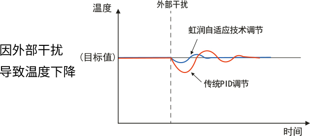 虹潤自適應(yīng)技術(shù)自動抑制常規(guī)干擾引起的溫度波動,針對開關(guān)艙室門時(shí)外部空氣的流入等可預(yù)測的溫度波動,穩(wěn)定地進(jìn)行自動控制。提高品質(zhì),縮短溫度變化穩(wěn)定所需的時(shí)間,且將溫度波動控制在較小限度,為提高生產(chǎn)能力做出貢獻(xiàn)。