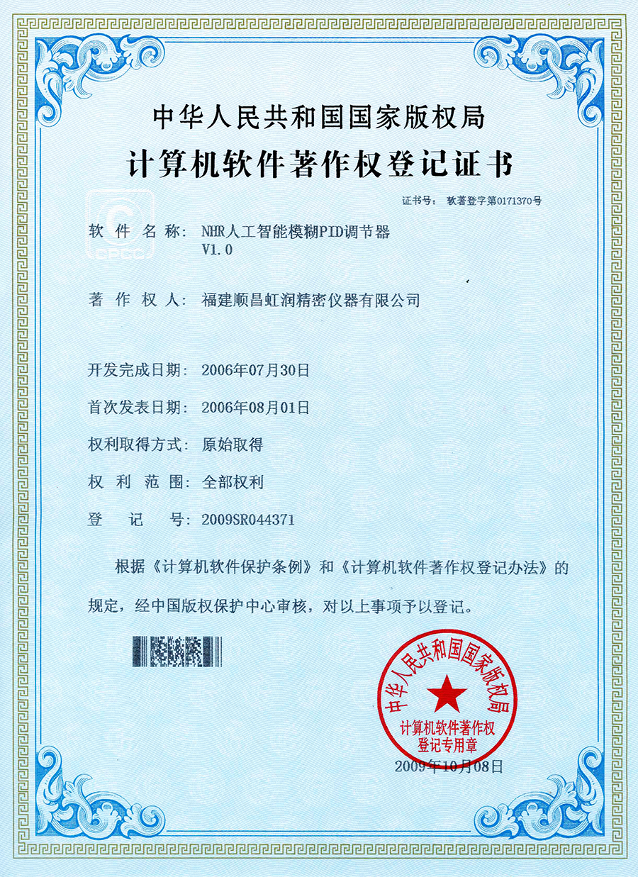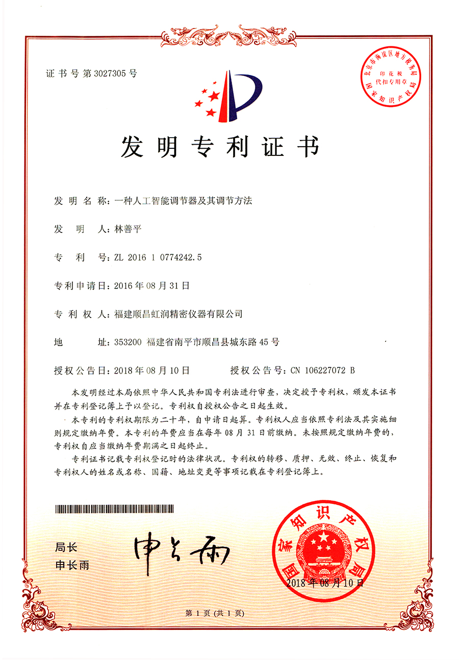 虹潤于2015年推出人工智能算法的溫控器。經(jīng)過長時(shí)間現(xiàn)場使用,溫控器無需人工整定參數(shù),無超調(diào)、欠調(diào),控溫精度高,基本達(dá)±0.1℃,得到用戶一致好評??刂扑惴ǐ@4項(xiàng)發(fā)明專利,主持起草2項(xiàng)國家標(biāo)準(zhǔn),獲得6項(xiàng)軟件著作權(quán)。