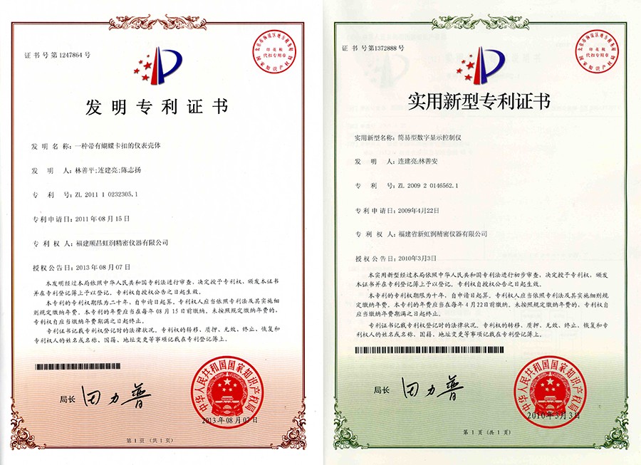 數(shù)顯儀表是虹潤(rùn)公司全新一代智能數(shù)字精密測(cè)量?jī)x表,產(chǎn)品榮獲1項(xiàng)國(guó)家發(fā)明專利(專利號(hào) 2011102323051),簡(jiǎn)易型數(shù)字顯示控制儀 (專利號(hào)2009201465621)1項(xiàng)實(shí)用新型專利,NHR簡(jiǎn)易單路數(shù)字顯示控制儀表軟件(版權(quán)登記號(hào)2009SR033683)、NHR單回路數(shù)字顯示控制儀表軟件 (版權(quán)登記號(hào)2009SR038317)2項(xiàng)軟件著作權(quán)。