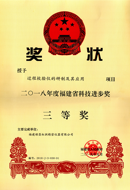 虹潤公司“過程校驗(yàn)儀的研制及其應(yīng)用”項(xiàng)目榮獲2018年福建省科技進(jìn)步獎(jiǎng)三等獎(jiǎng)