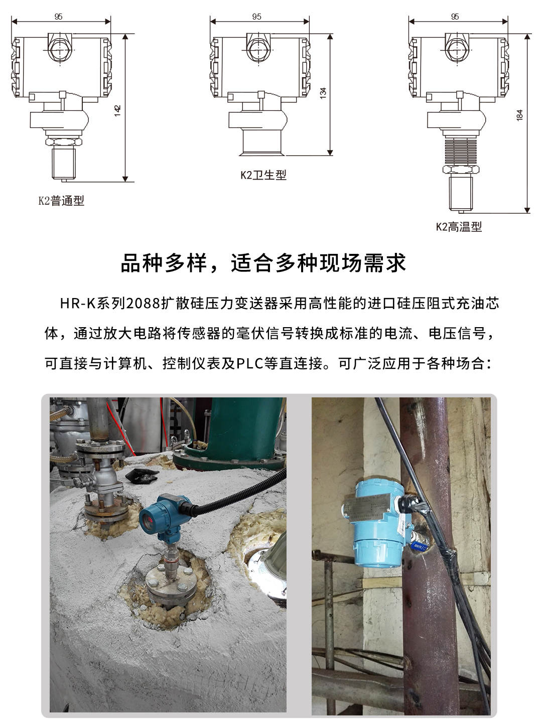 虹潤公司是專業(yè)生產壓力變送器的國家專精特新“小巨人”企業(yè),生產的擴散硅壓力變送器,具有精度高,穩(wěn)定性好,響應速度快,高可靠性,抗過載和抗沖擊能力強,安裝方便等特點。產品獲得一種數字顯示低功耗壓力表、一種信號發(fā)生器裝置等2項國家發(fā)明專利,主持起草工業(yè)過程控制系統用模擬輸入兩位或多位輸出儀表、工業(yè)過程測量和控制系統用壓力/差壓變送器等2項國家標準,通信系統多通道數據采集控制終端規(guī)范軍用標準,以及現場設備集成等5項智能制造國家標準。參與國際5G標準制定,取得數顯壓力表等2項相關軟件著作權。產品廣泛應用于化工、食品、制藥、電力、設備配套、供暖、水處理、樓宇等行業(yè),需精準測量流體壓力的現場。