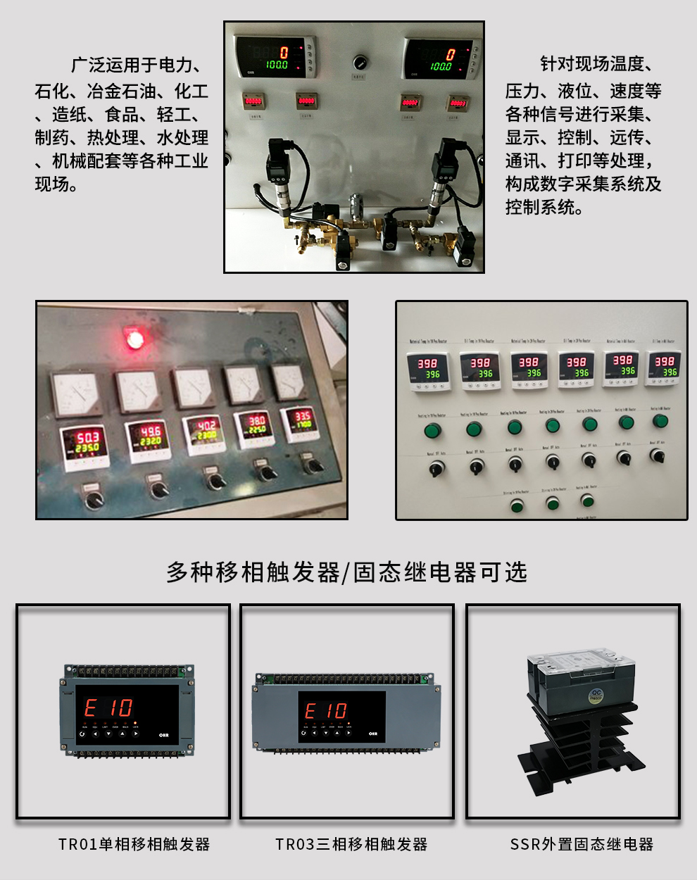 虹潤(rùn)公司是專(zhuān)業(yè)生產(chǎn)移相觸發(fā)器的國(guó)家專(zhuān)精特新“小巨人”企業(yè),生產(chǎn)的移相觸發(fā)器,具有采用光電隔離設(shè)計(jì),自動(dòng)同步功能,過(guò)流保護(hù)技術(shù),電源缺相檢測(cè),信號(hào)超限報(bào)警等特點(diǎn)。產(chǎn)品獲得巡回檢測(cè)顯示方法及裝置、儀表殼體等2項(xiàng)國(guó)家發(fā)明專(zhuān)利,主持起草工業(yè)過(guò)程控制系統(tǒng)用模擬輸入兩位或多位輸出儀表、物聯(lián)網(wǎng)智能溫度儀表通用技術(shù)條件等2項(xiàng)國(guó)家標(biāo)準(zhǔn)以及通信系統(tǒng)多通道數(shù)據(jù)采集控制終端規(guī)范軍用標(biāo)準(zhǔn),參與國(guó)際5G標(biāo)準(zhǔn)制定,取得外置移相觸發(fā)器等2項(xiàng)相關(guān)軟件著作權(quán)。產(chǎn)品廣泛應(yīng)用于工業(yè)溫控、電極控制、航天軍工、電爐溫控、食品醫(yī)藥等諸多領(lǐng)域。