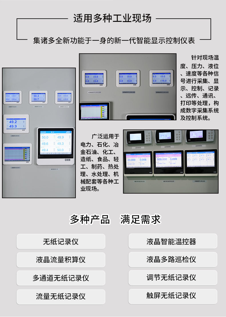 虹潤公司是專業(yè)生產(chǎn)無紙記錄儀的國家專精特新“小巨人”企業(yè)。生產(chǎn)的觸摸屏調(diào)節(jié)無紙記錄儀,具有觸摸大屏顯示,真正人工智能算式,無需人工整定參數(shù),控制精度達士0.1°C,數(shù)據(jù)記錄與轉(zhuǎn)存, RS485/以太網(wǎng)通訊,5/7/9英寸可選等特點。產(chǎn)品獲得智能化控制器、人工智能調(diào)節(jié)器及調(diào)節(jié)方法、模糊PID控制儀及控制方法、平板無紙記錄儀、巡回檢測顯示方法及裝置等5項國家發(fā)明專利,主持起草物聯(lián)網(wǎng)智能記錄儀表通用技術條件、物聯(lián)網(wǎng)智能溫度儀表通用技術條件、工業(yè)過程測量和控制系統(tǒng)用智能調(diào)節(jié)器等3項國家標準,通信系統(tǒng)多通道數(shù)據(jù)采集控制終端規(guī)范軍用標準,以及空間數(shù)據(jù)與信息數(shù)據(jù)傳輸系統(tǒng)等2項航天標準,參與國際5G標準制定,取得觸摸屏彩色調(diào)節(jié)無紙記錄儀等3項相關軟件著作權。產(chǎn)品廣泛應用于電力、石化、冶金、化工、食品、制藥、熱處理、水處理、機械配套等諸多領域。