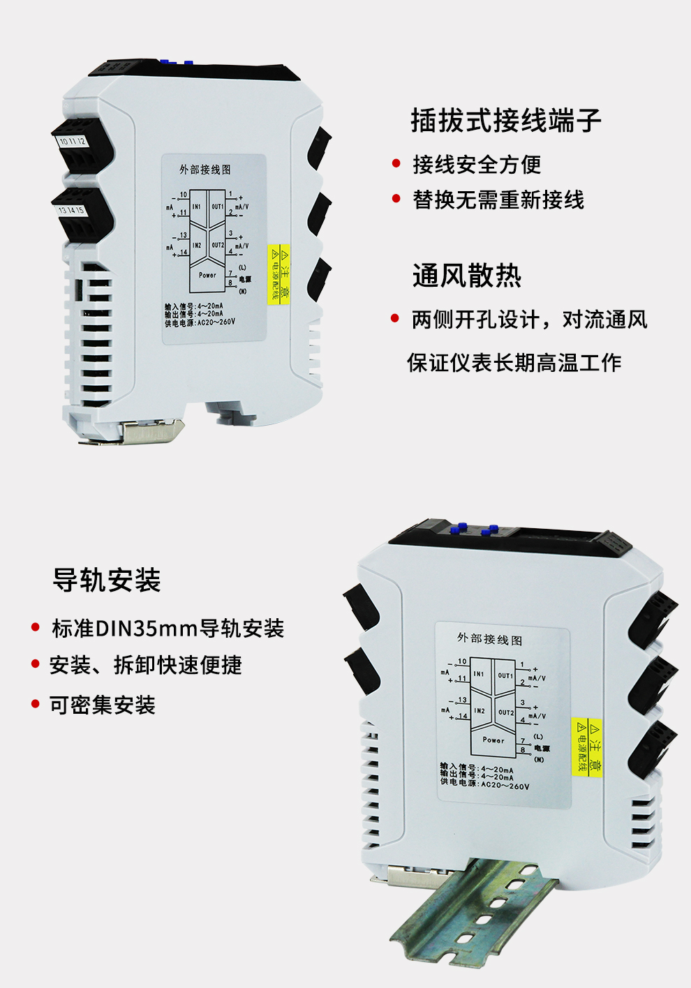 虹潤公司是專業(yè)生產(chǎn)隔離器的國家專精特新“小巨人”企業(yè)。生產(chǎn)的導(dǎo)軌式智能隔離器 ,具有高清顯示單元,參數(shù)可設(shè)置,寬電源供電,響應(yīng)快,帶RS485通訊等特點。產(chǎn)品獲得信號隔離器、一種二端子模塊、無源信號隔離器等3項國家發(fā)明專利,主持起草現(xiàn)場設(shè)備工具(FDT)接口規(guī)范、工業(yè)過程測量和控制系統(tǒng)用隔離式安全柵、工業(yè)過程測量和控制系統(tǒng)用配電器等3項國家標準,以及通信系統(tǒng)多通道數(shù)據(jù)采集控制終端規(guī)范軍用標準,參與國際5G標準制定,取得智能隔離器等2項相關(guān)軟件著作權(quán)。產(chǎn)品廣泛應(yīng)用于電力、石化,冶金、制藥、水處理、機械配套等各種工業(yè)現(xiàn)場。