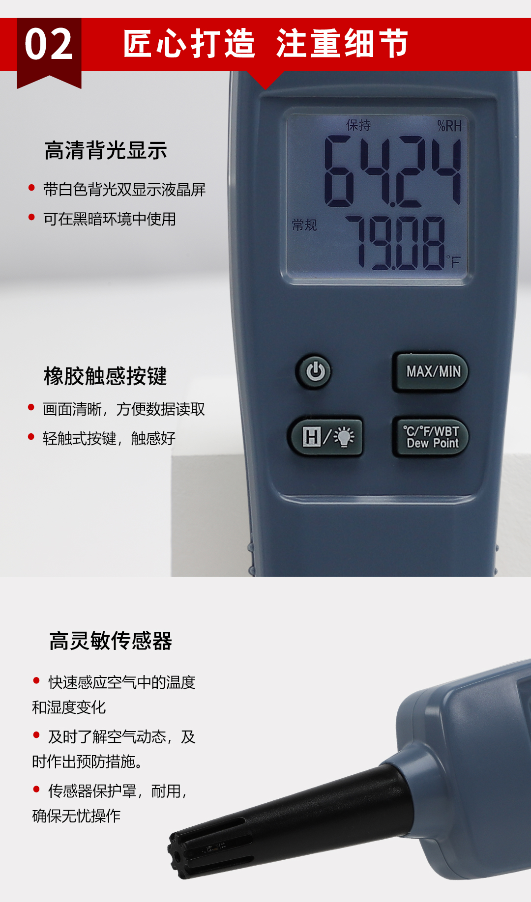 虹潤公司是專業(yè)生產(chǎn)環(huán)境監(jiān)測儀表的國家專精特新“小巨人”企業(yè)。生產(chǎn)的手持式溫濕度檢測儀,具有測量精度高,多參數(shù)測量,最大最小值記錄,小巧便捷、低功耗省電設(shè)計等特點(diǎn)。產(chǎn)品獲得一種手持式低功耗溫濕度檢測儀、大屏幕溫濕度記錄儀等2項(xiàng)國家發(fā)明專利,主持起草物聯(lián)網(wǎng)智能溫度儀表通用技術(shù)條件、冷鏈溫度記錄儀等2項(xiàng)國家標(biāo)準(zhǔn),以及通信系統(tǒng)多通道數(shù)據(jù)采集控制終端規(guī)范軍用標(biāo)準(zhǔn),以及現(xiàn)場設(shè)備集成等5項(xiàng)智能制造國家標(biāo)準(zhǔn),參與國際5G標(biāo)準(zhǔn)制定,取得環(huán)境溫濕度測試儀等3項(xiàng)相關(guān)軟件著作權(quán)。產(chǎn)品廣泛應(yīng)用于實(shí)驗(yàn)室、博物館、農(nóng)業(yè)大棚、生產(chǎn)車間、倉庫、配電機(jī)房等諸多領(lǐng)域。