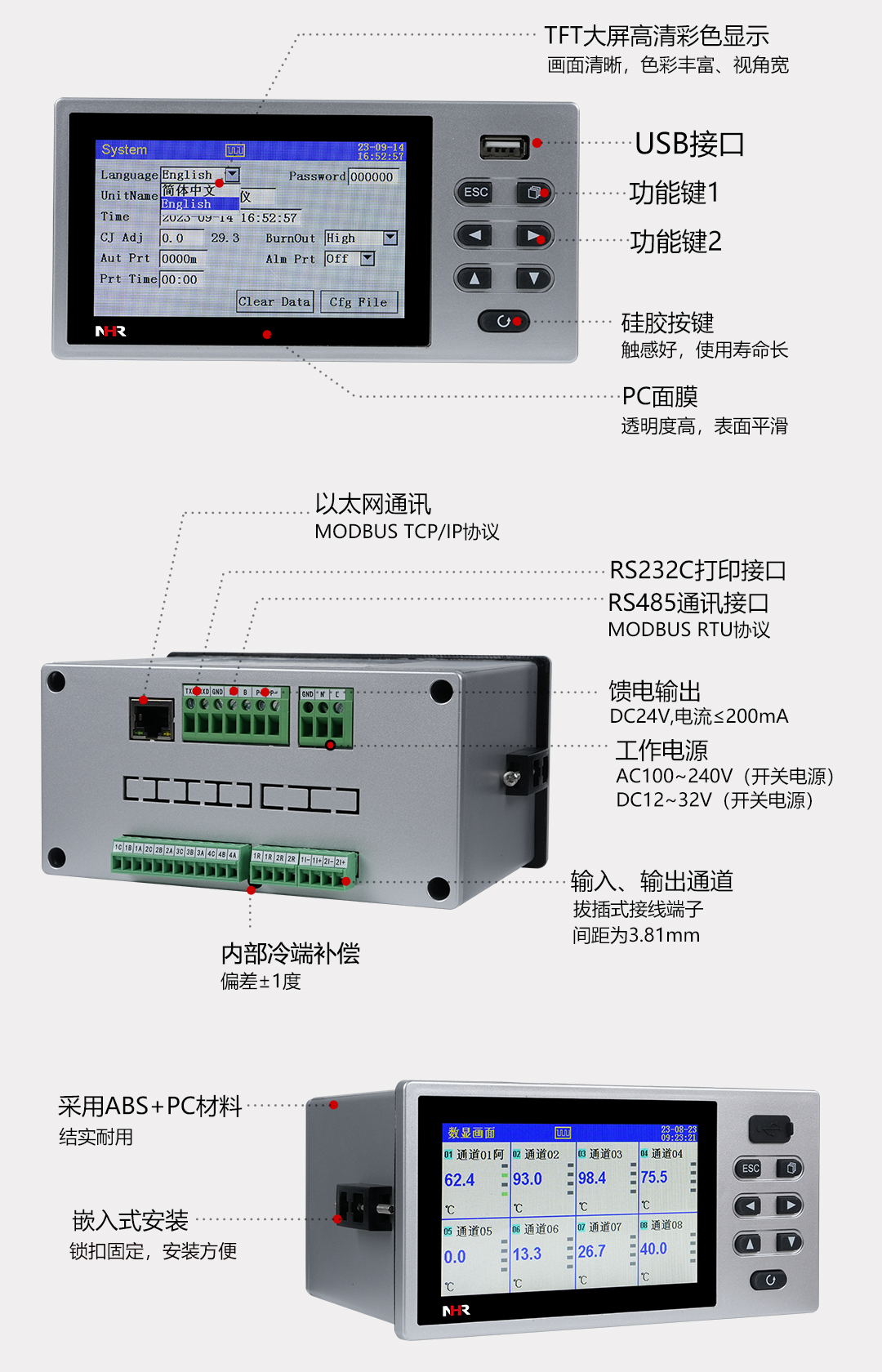 NHR-7100T系列彩色無紙記錄儀