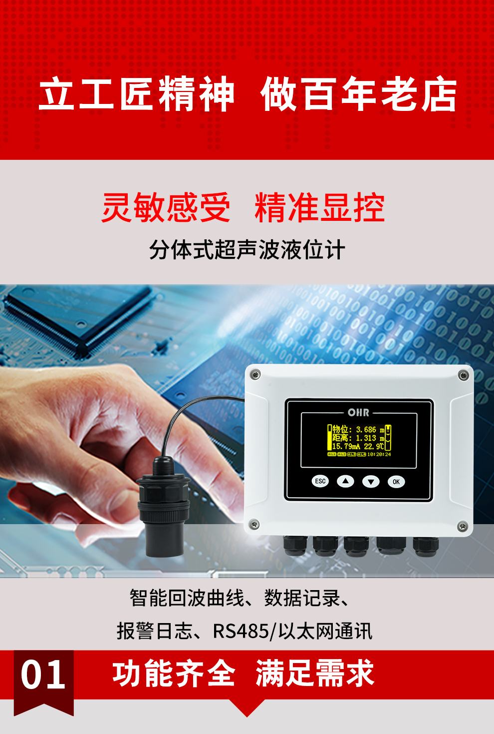 虹潤公司是專業(yè)生產(chǎn)超聲波液位計的國家專精特新“小巨人”企業(yè)。生產(chǎn)的分體式超聲波液位計,具有數(shù)據(jù)記錄與轉(zhuǎn)存,智能回波曲線顯示,RS485/以太網(wǎng)通訊,報警繼電器輸出,報警日志等特點(diǎn)。產(chǎn)品獲得無紙記錄儀以及一種信號發(fā)生裝置等2項國家發(fā)明專利,主持起草物聯(lián)網(wǎng)智能記錄儀表以及工業(yè)過程控制系統(tǒng)用模擬輸入兩位或多位輸出儀表等2項國家標(biāo)準(zhǔn),以及通信系統(tǒng)多通道數(shù)據(jù)采集控制終端規(guī)范軍用標(biāo)準(zhǔn),參與國際5G標(biāo)準(zhǔn)制定,取得超聲波液位計等2項相關(guān)軟件著作權(quán)。產(chǎn)品廣泛石化、電力、食品、污水處理、市政設(shè)施等諸多領(lǐng)域。