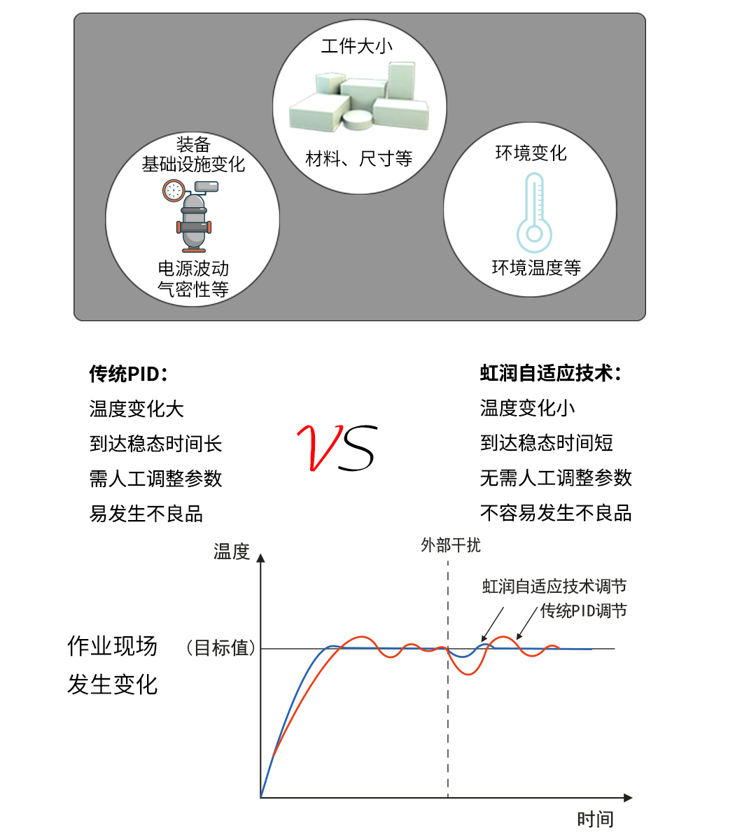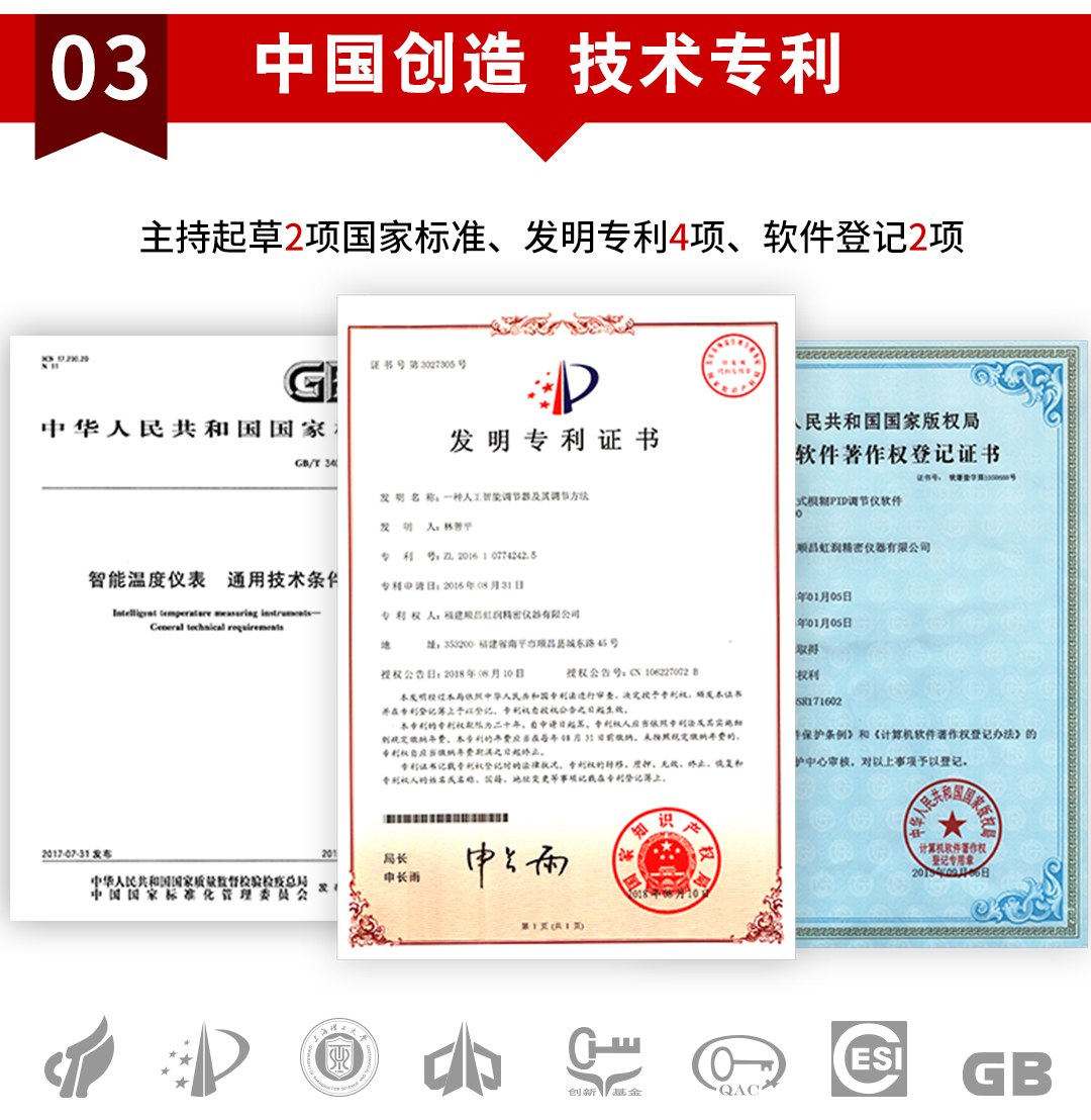 虹潤公司是專業(yè)生產(chǎn)溫控器的國家專精特新“小巨人”企業(yè)。生產(chǎn)的人工智能溫控器,具有真正人工智能算式,無需人工整定參數(shù),控制精度可達(dá)±0.1°C,多種輸出類型,高抗干擾等特點(diǎn)。產(chǎn)品獲得模糊PID控制儀及控制方法、人工智能調(diào)節(jié)器、智能化控制器、移相觸發(fā)控制器、閥門自動(dòng)手動(dòng)無擾動(dòng)操作控制方法及裝置等5項(xiàng)國家發(fā)明專利,主持起草工業(yè)過程控制系統(tǒng)用模擬輸入兩位或多位輸出儀表、物聯(lián)網(wǎng)智能溫度儀表通用技術(shù)條件、工業(yè)過程測(cè)量和控制系統(tǒng)用智能調(diào)節(jié)器等3項(xiàng)國家標(biāo)準(zhǔn),以及通信系統(tǒng)多通道數(shù)據(jù)采集控制終端規(guī)范軍用標(biāo)準(zhǔn),參與國際5G標(biāo)準(zhǔn)制定,取得模糊PID溫控儀等3項(xiàng)相關(guān)軟件著作權(quán)。產(chǎn)品廣泛應(yīng)用于電力、石化,冶金、制藥、食品等幾乎所有工業(yè)現(xiàn)場(chǎng),實(shí)現(xiàn)精準(zhǔn)控溫,保障生產(chǎn)安全與質(zhì)量。