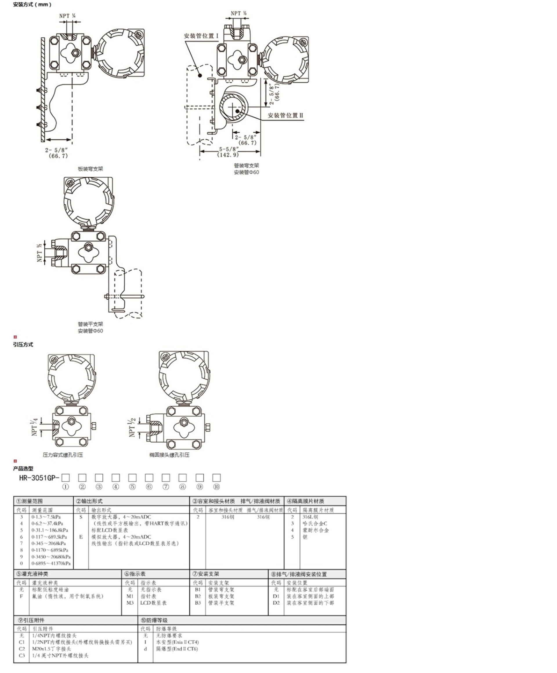 HR-3051GP型壓力變送器主要用于測(cè)量氣體、液體和蒸汽的壓力、負(fù)壓力等參數(shù),然后將其轉(zhuǎn)換成4~20mA.DC信號(hào)輸出。GP型壓力變送器的δ室,一側(cè)接受被測(cè)壓力信號(hào),另一側(cè)則與大氣壓力貫通,因此可用于測(cè)量表壓力或負(fù)壓。